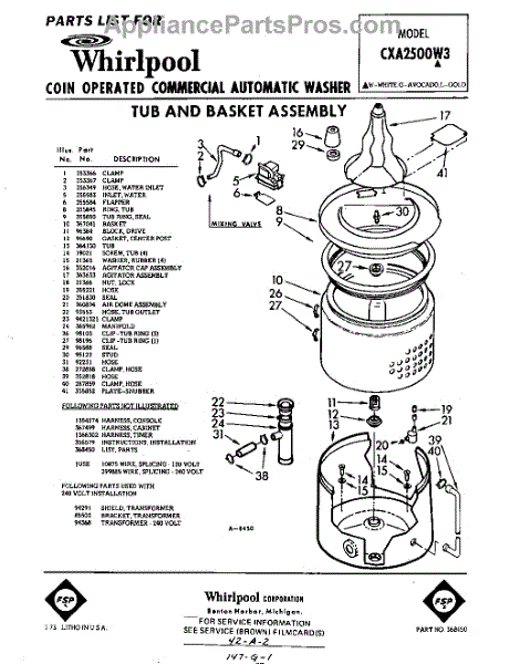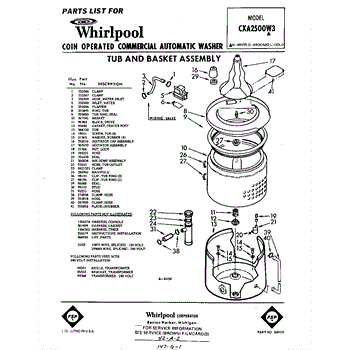 Parts for Whirlpool CXA2500W3: 01 - Tub And Basket , Lit / Optional Parts