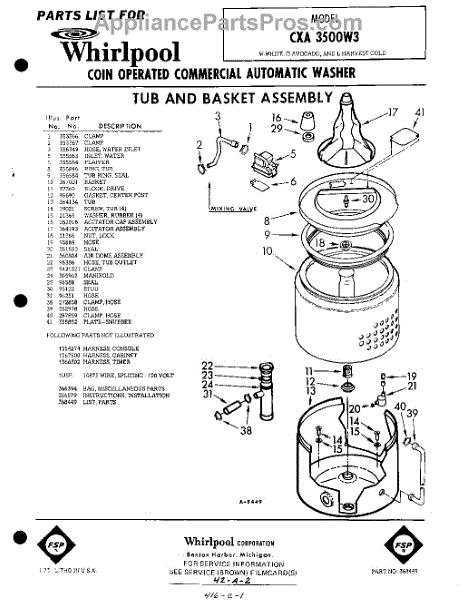 Parts for Whirlpool CXA3500W3: 01 - Tub And Basket , Lit / Optional Parts