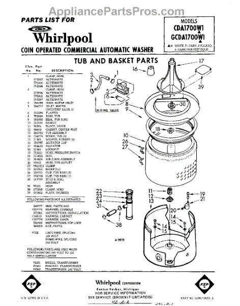 Parts for Whirlpool GCFA2000W0: 01 - Tub And Basket , Lit / Optional Parts