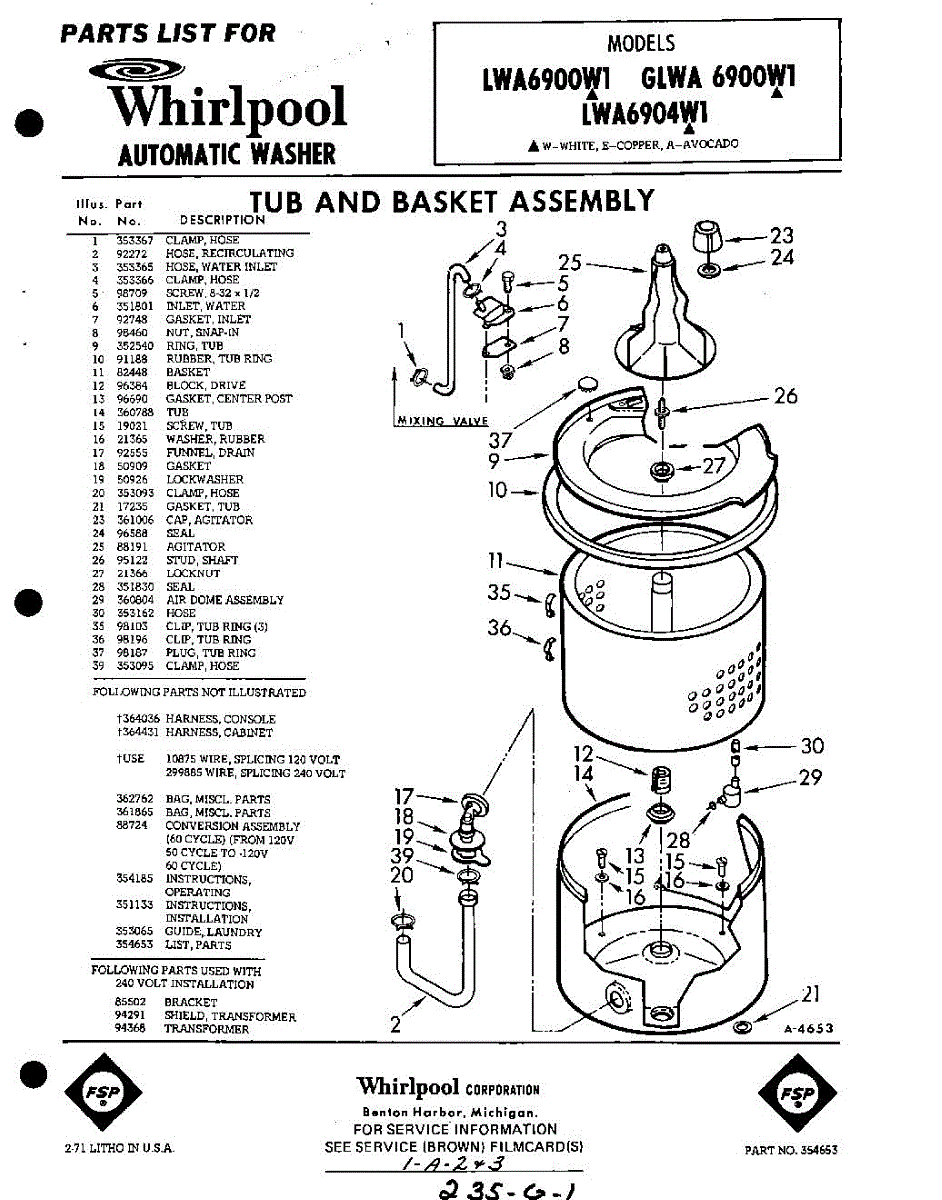 Parts for Whirlpool GLWA6900W1: 01 - Tub And Basket , Lit / Optional Parts