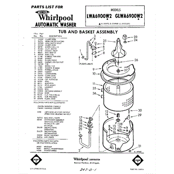 Parts for Whirlpool GLWA6900W2: 01 - Tub And Basket , Lit / Optional Parts