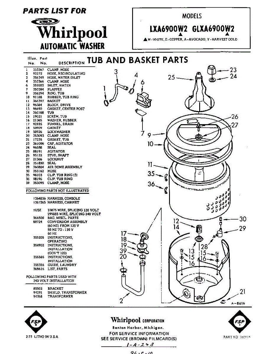 Parts for Whirlpool GLXA6900W2: 01 - Tub And Basket, Lit / Optional Parts