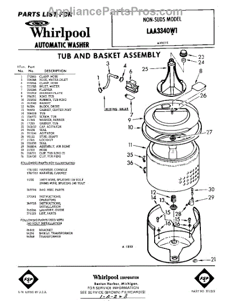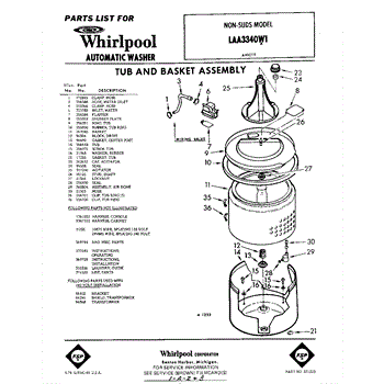 Parts for Whirlpool LAA3340W1: 01 - Tub And Basket , Lit / Optional Parts