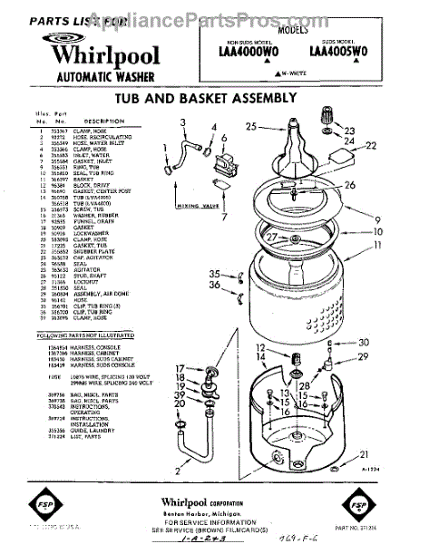Parts for Whirlpool LAA4000W0: 01 - Tub And Basket , Lit / Optional Parts
