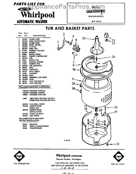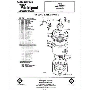 Parts for Whirlpool LAA5000W0: 01 - Tub And Basket, Lit / Optional Parts