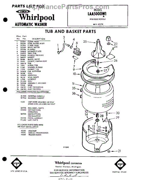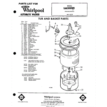 Parts for Whirlpool LAA5000W1: 01 - Tub And Basket , Lit / Optional Parts