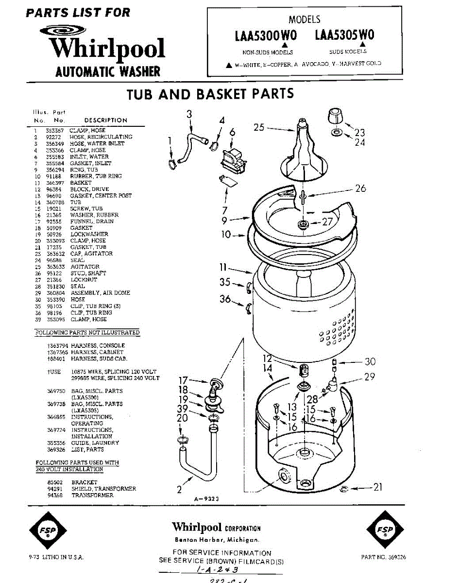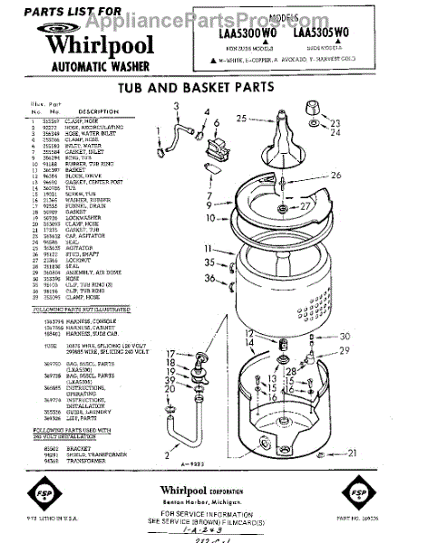 Parts for Whirlpool LAA5300W0: 01 - Tub And Basket , Lit / Optional Parts