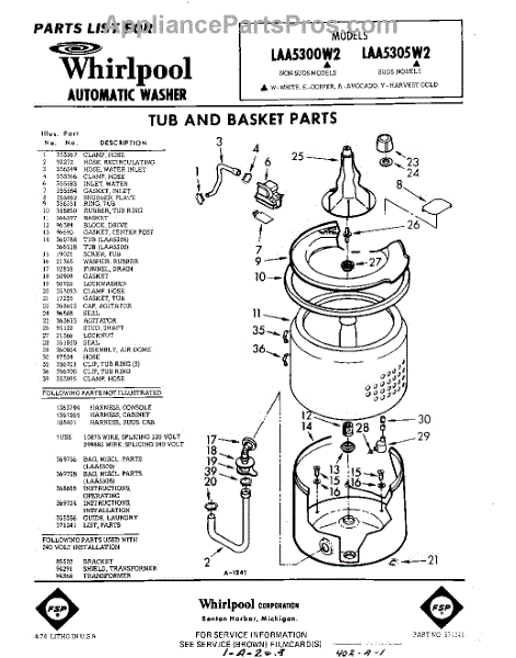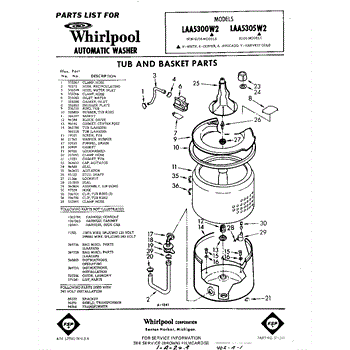 Parts for Whirlpool LAA5300W2: 01 - Tub And Basket , Lit / Optional Parts