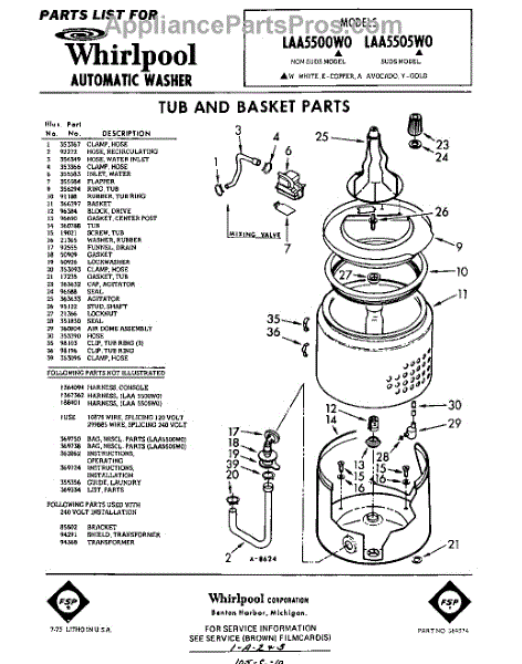Parts for Whirlpool LAA5500W0: 01 - Tub And Basket, Lit / Optional Parts