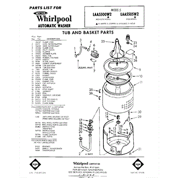 Parts for Whirlpool LAA5500W2: 01 - Tub And Basket , Lit / Optional Parts