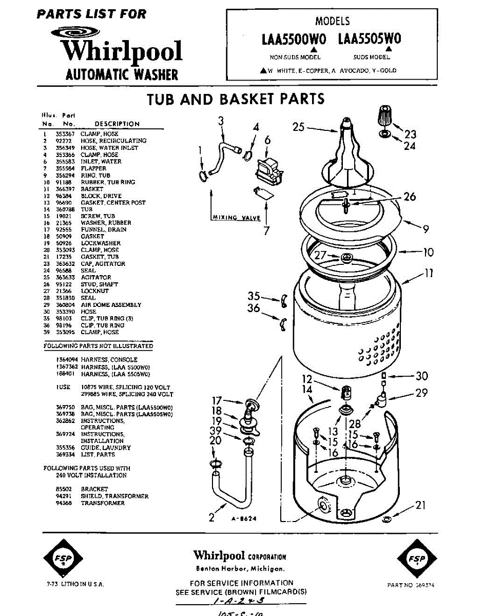 Parts for Whirlpool LAA5505W0: 01 - Tub And Basket, Lit / Optional Parts