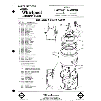 Parts for Whirlpool LAA5525W2: 01 - Tub And Basket , Lit / Optional Parts