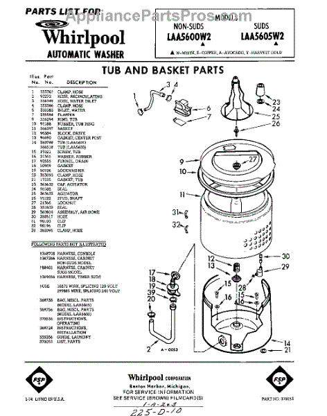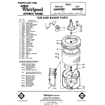 Parts for Whirlpool LAA5600W2: 01 - Tub And And Basket , Lit / Optional Parts