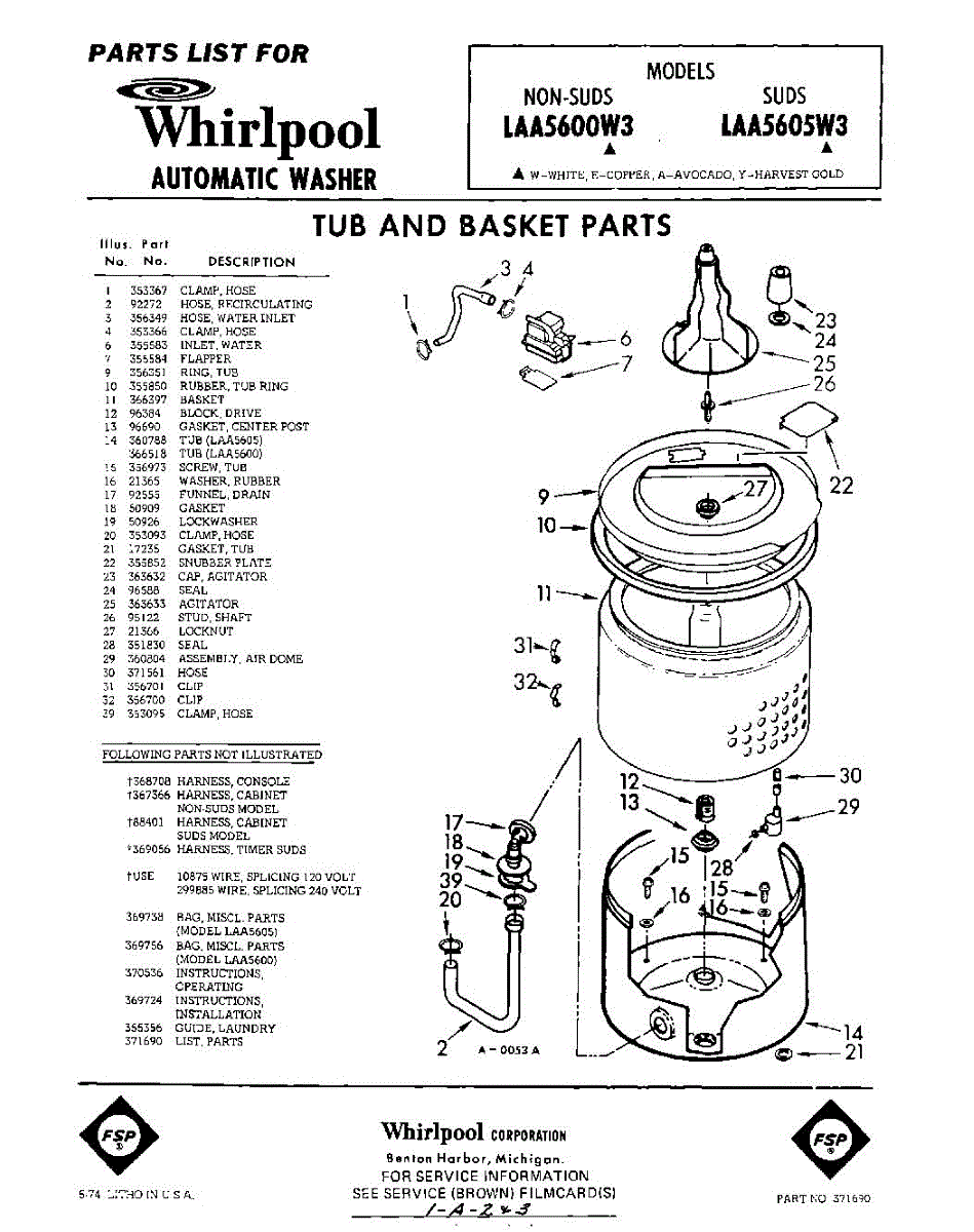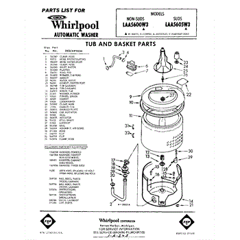 Parts for Whirlpool LAA5605W3: 01 - Tub And Basket , Lit / Optional Parts