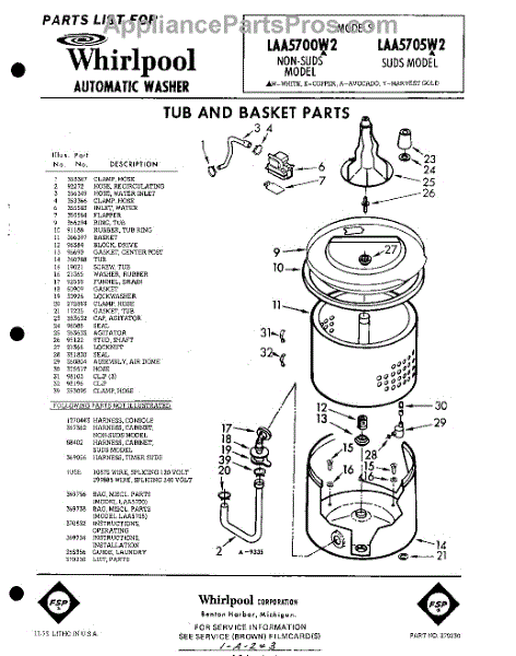Parts for Whirlpool LAA5700W2: 01 - Tub And Basket , Lit / Optional Parts
