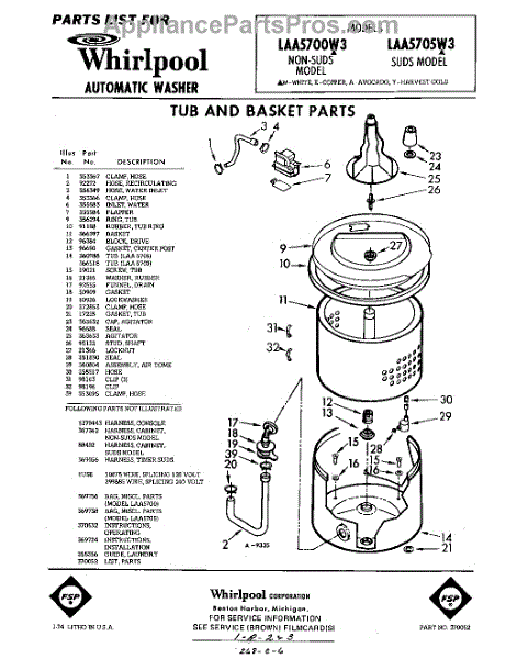Parts for Whirlpool LAA5700W3: 01 - Tub And Basket , Lit / Optional Parts