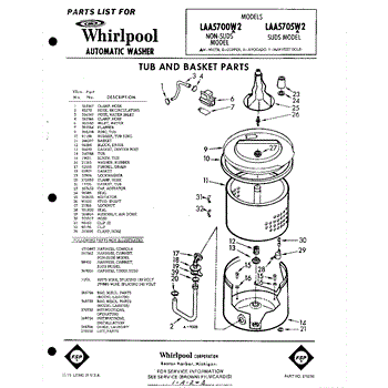 Parts for Whirlpool LAA5705W2: 01 - Tub And Basket , Lit / Optional Parts