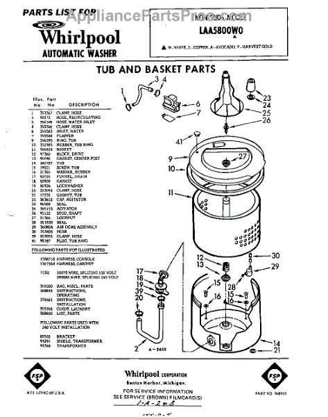 Parts for Whirlpool LAA5800W0: 01 - Tub And Basket, Lit / Optional Parts