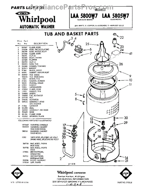 Parts for Whirlpool LAA5800W7: 01 - Tub And Basket , Lit / Optional Parts