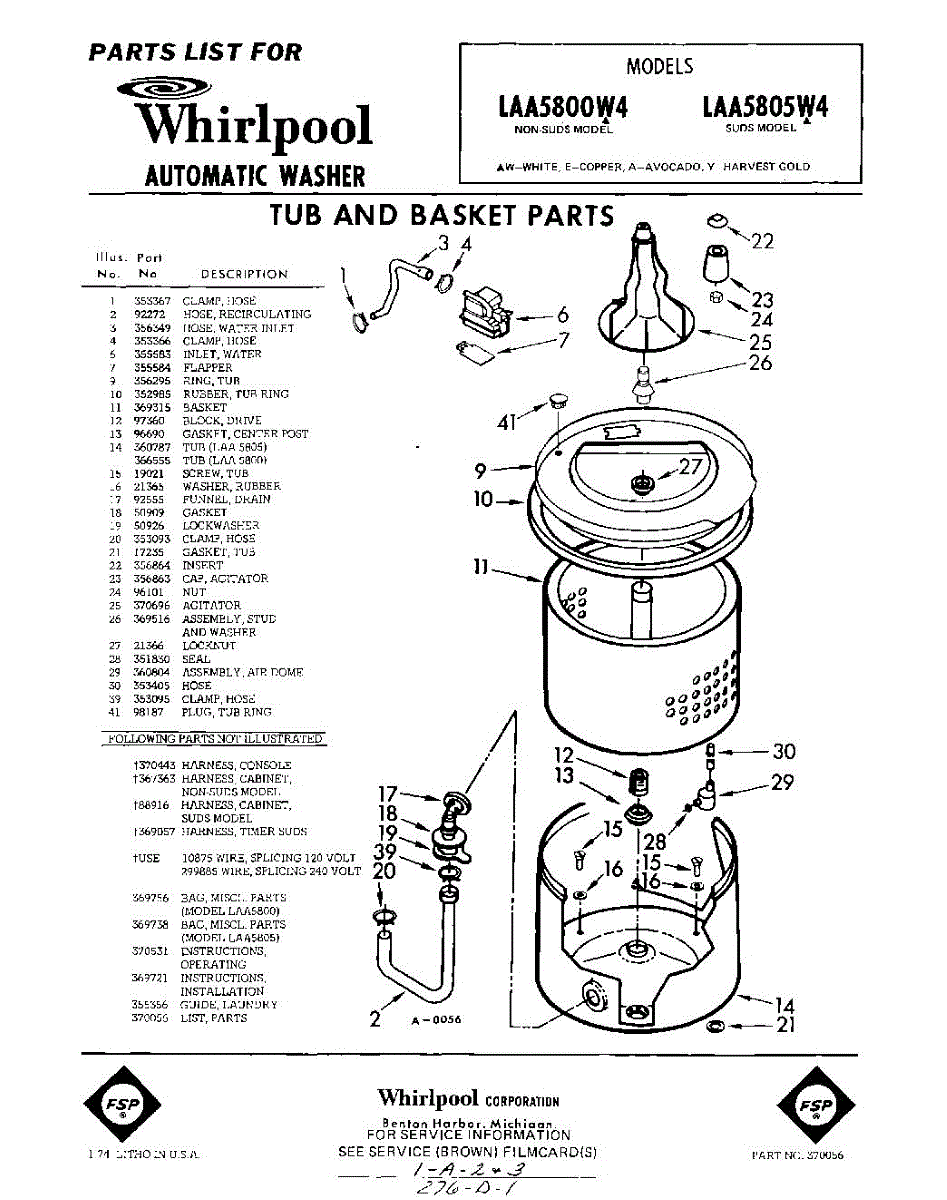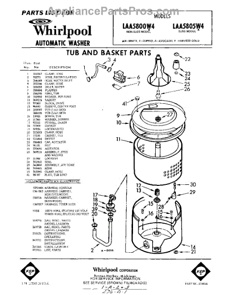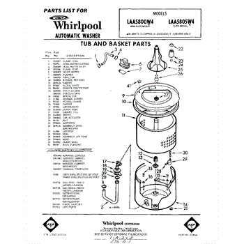 Parts for Whirlpool LAA5805W4: 01 - Tub And Basket , Lit / Optional Parts
