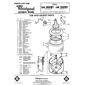 Parts for Whirlpool LAA5805W7: 01 - Tub And Basket , Lit / Optional Parts