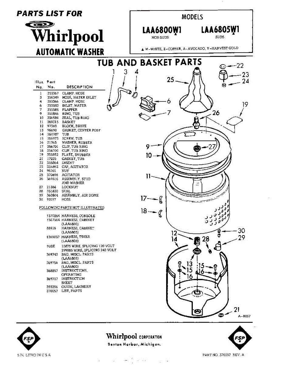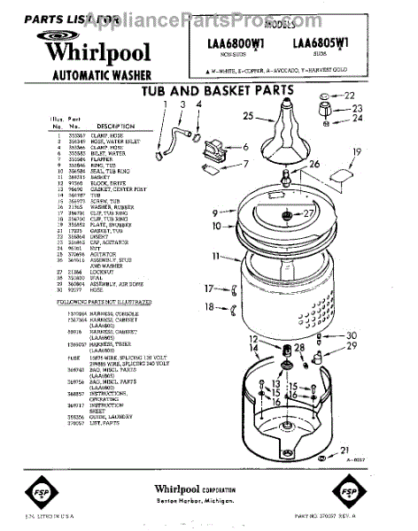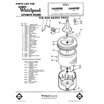 Parts for Whirlpool LAA6805W1: 01 - Tub And Basket , Lit / Optional Parts