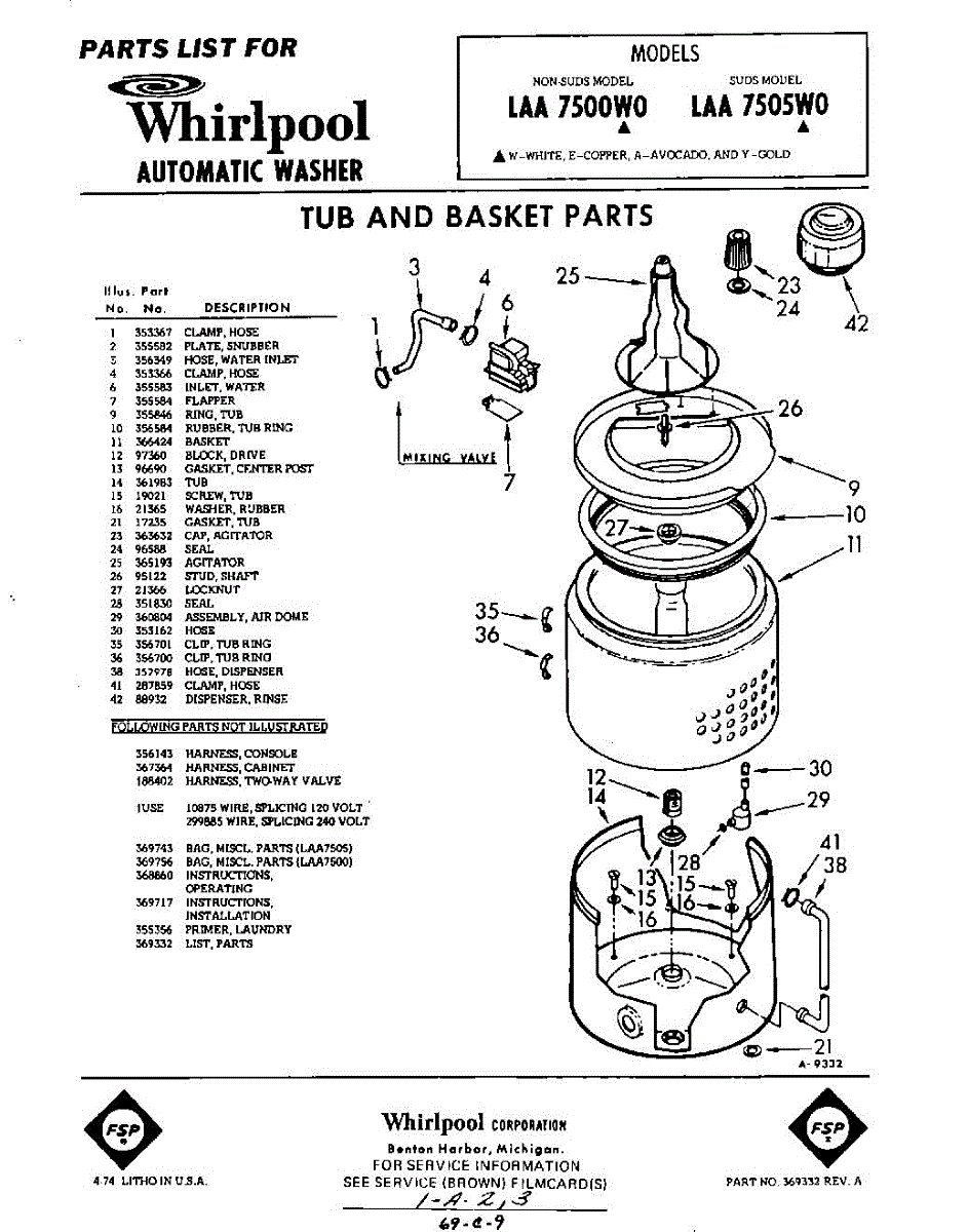 Parts for Whirlpool LAA7505W0: 01 - Tub And Basket , Lit / Optional Parts