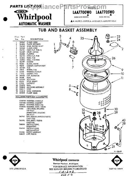 Parts for Whirlpool LAA7700W0: 01 - Tub And Basket , Lit / Optional Parts