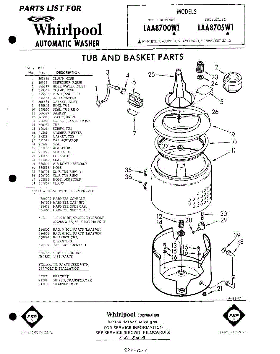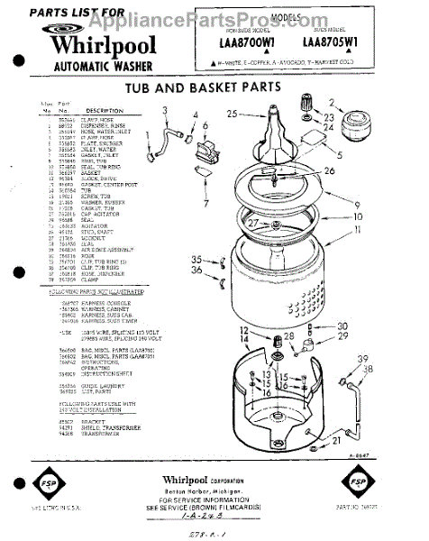 Parts for Whirlpool LAA7805W1: 01 - Tub And Basket , Lit / Optional Parts