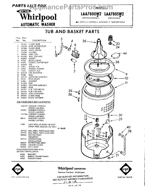 Parts for Whirlpool LAA7805W2: 01 - Tub And Basket , Lit / Optional Parts