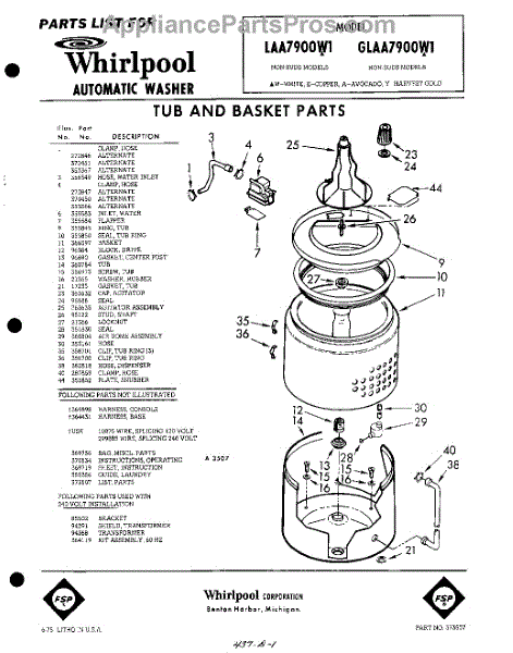 Parts for Whirlpool LAA7900W1: 01 - Tub And Basket , Lit / Optional Parts