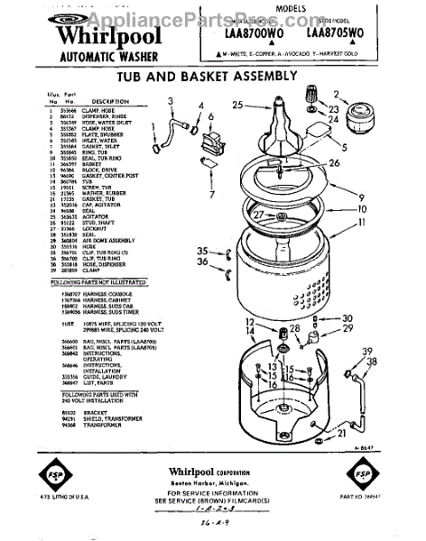 Parts for Whirlpool LAA8700W0: 01 - Tub And Basket , Lit / Optional Parts