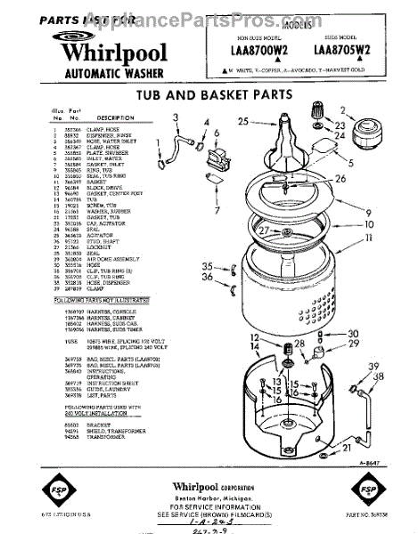 Parts for Whirlpool LAA8705W2: 01 - Tub And Basket , Lit / Optional Parts