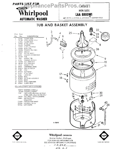 Parts for Whirlpool LAA8800W1: 01 - Tub And Basket , Lit / Optional Parts