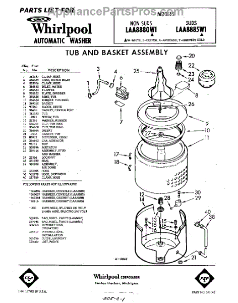Parts for Whirlpool LAA8885W1: 01 - Tub And Basket , Lit / Optional Parts