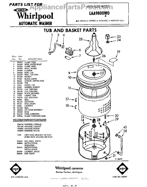 Parts for Whirlpool LAA9800W0: 01 - Tub And Basket , Lit / Optional Parts