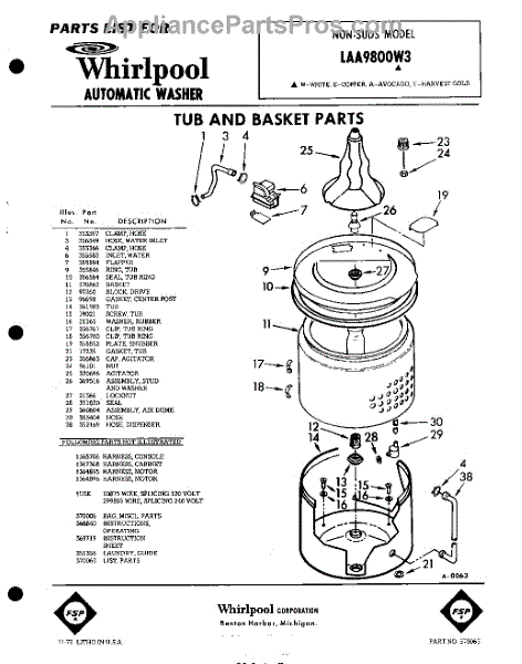 Parts for Whirlpool LAA9800W3: 01 - Tub And Basket , Lit / Optional Parts