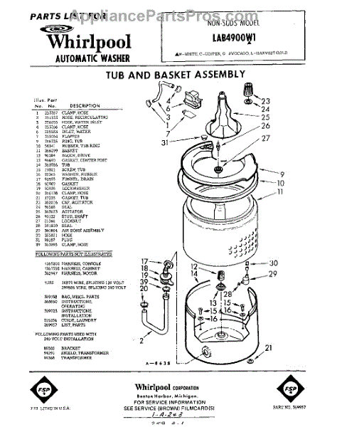 Parts for Whirlpool LAB4900W1: 01 - Tub And Basket , Lit / Optional Parts