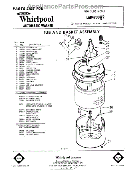 Parts for Whirlpool LAB4900W2: 01 - Tub And Basket , Lit / Optional Parts
