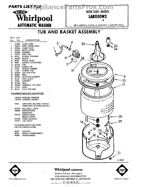 Parts for Whirlpool LAB5150W2: 01 - Tub And Basket , Lit / Optional Parts