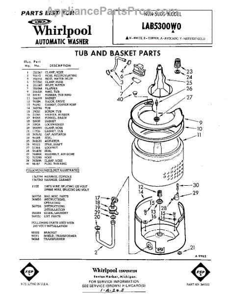 Parts for Whirlpool LAB5300W0: 01 - Tub And Basket , Lit / Optional Parts