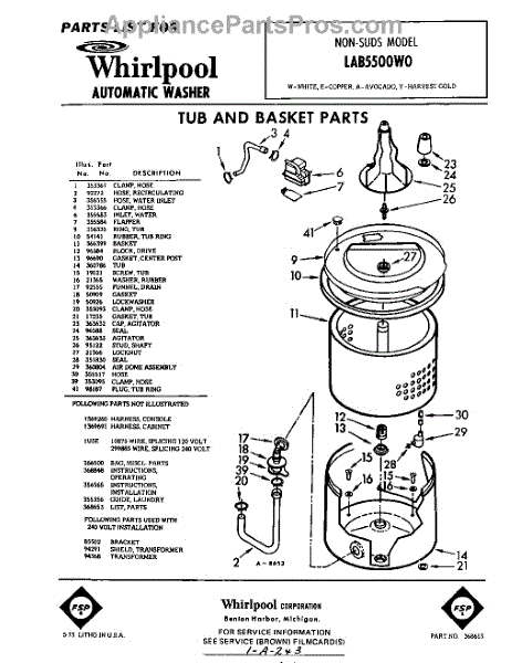 Parts for Whirlpool LAB5500W0: 01 - Tub And Basket , Lit / Optional Parts