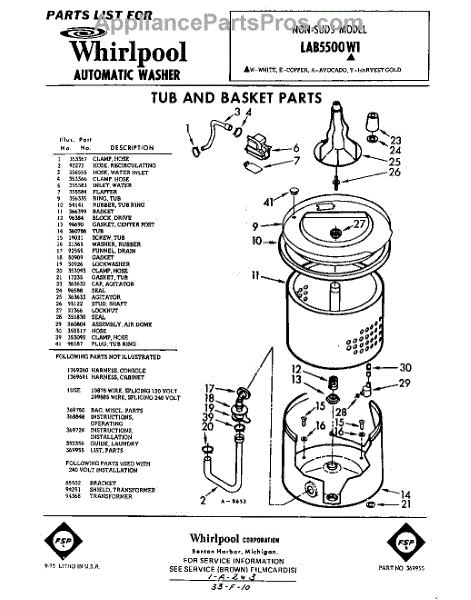 Parts for Whirlpool LAB5500W1: 01 - Tub And Basket, Lit / Optional Parts
