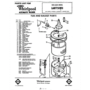 Parts for Whirlpool LAB7750W0: 01 - Tub And Basket , Lit / Optional Parts