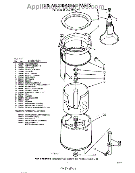 Parts for Whirlpool LAC4100W2: 03 - Tub And Basket , Lit / Optional Parts