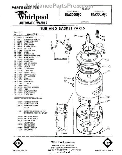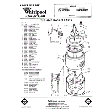Parts for Whirlpool LDA3000W0: 01 - Tub And Basket , Lit / Optional Parts