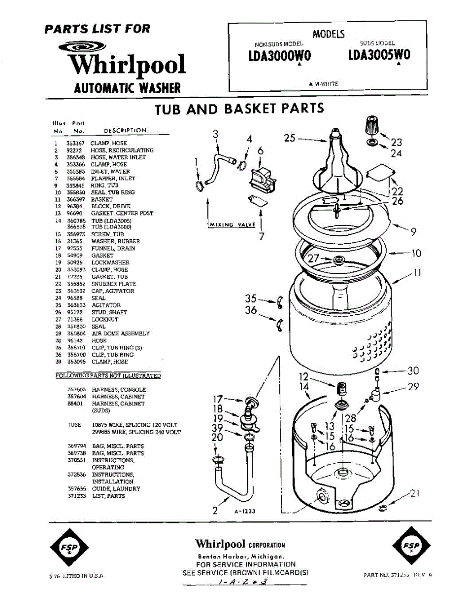 Parts for Whirlpool LDA3005W0: 01 - Tub And Basket , Lit / Optional Parts