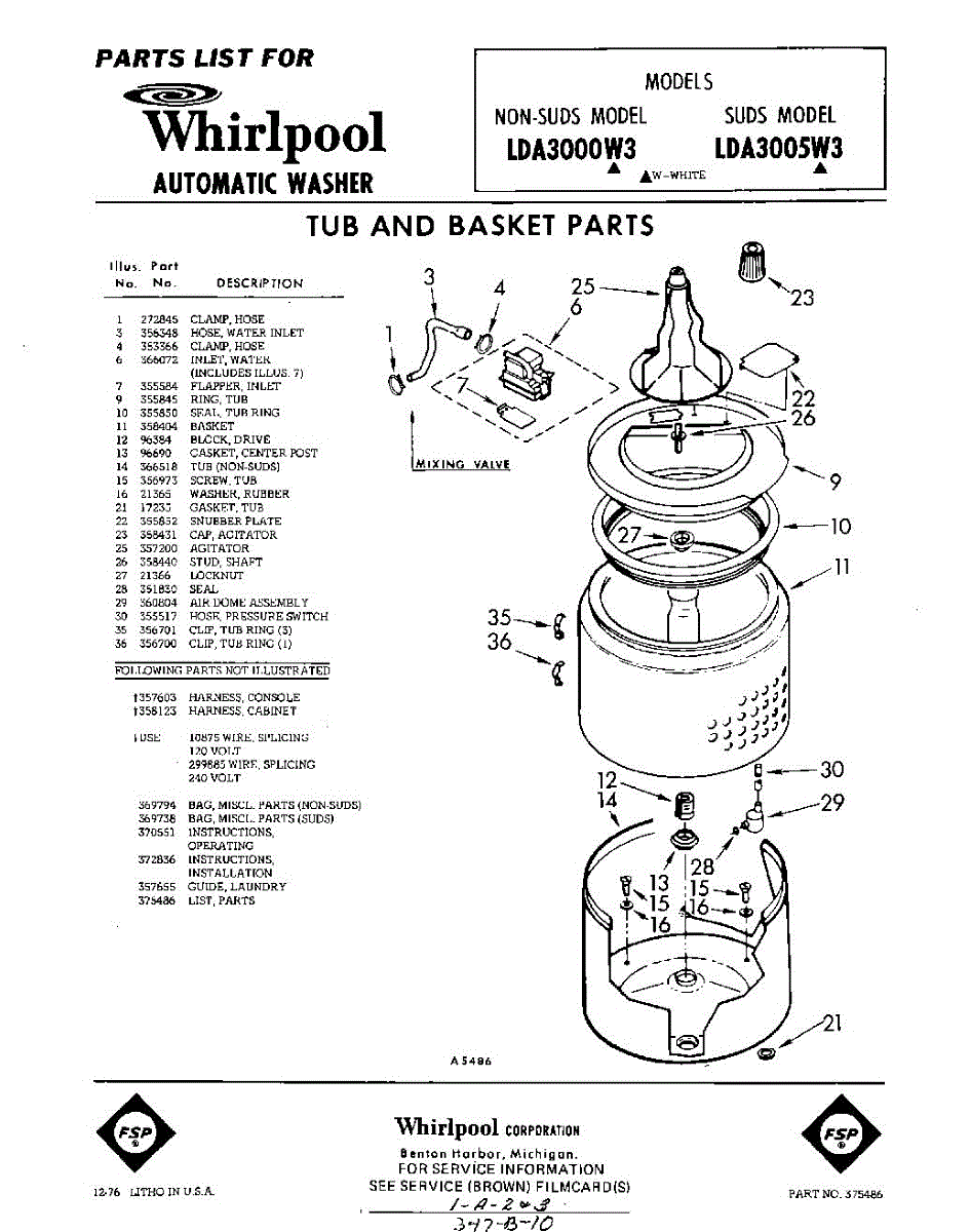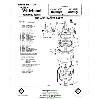 Parts for Whirlpool LDA3005W3: 01 - Tub And Basket , Lit / Optional Parts