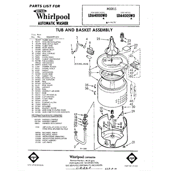 Parts for Whirlpool LDA4005W0: 01 - Tub And Basket , Lit / Optional Parts
