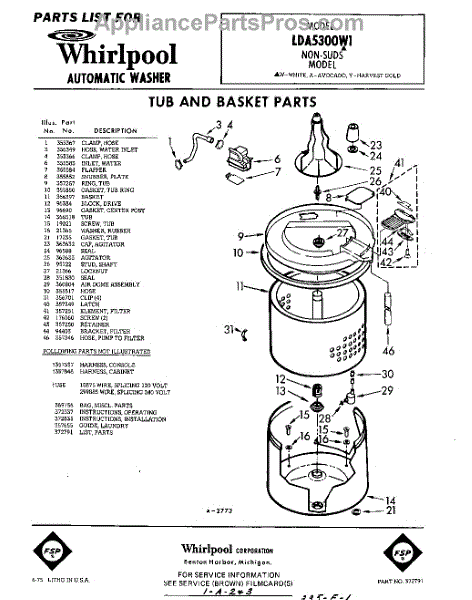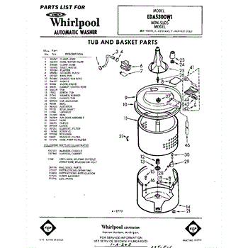 Parts for Whirlpool LDA5300W1: 01 - Tub And Basket , Lit / Optional Parts